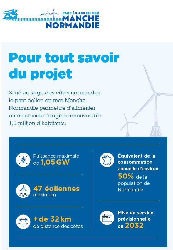 Depuis mars 2023, l'équipe projet du parc éolien en Mer Manche Normandie va à la rencontre du public afin d'informer et recueillir les contributions de chacun. Parcourez les articles ci-dessous pour prendre connaissance de ce riche historique.